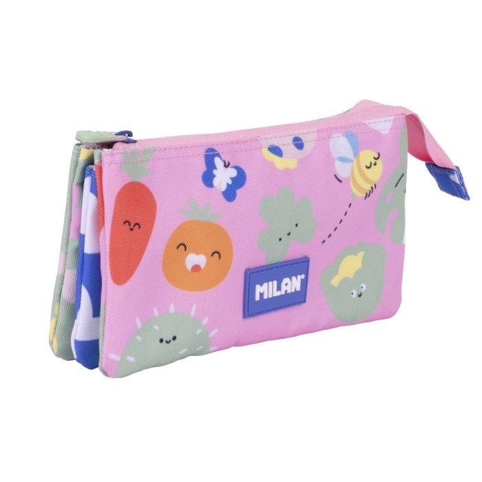 Piórnik saszetka MILAN z 5 komorami i 2 zamkami błyskawicznymi. Zewnętrzny zamek błyskawiczny zapewnia dostęp do 4 otwartych kieszeni wewnętrznych i jednej środkowej kieszeni zapinanej na zamek błyskawiczny. Kolory różowy i zielony. Specjalna seria Green & Grow z rysunkami roślin, kwiatów, grzybów, owadów i warzyw. Dopasuj do kolorowanek. Skład materiału: poliester. Rozmiar: 22 x 12 x 4 cm.