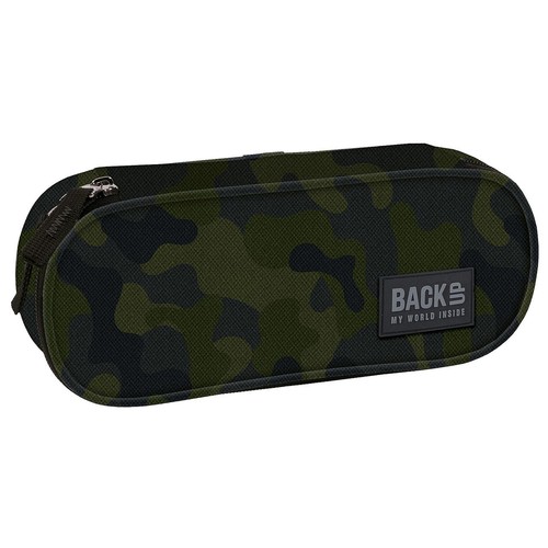 Piórnik BackUP model A 06 z motywem bardzo ciemnego moro w klasycznych odcieniach khaki - najmodniejszego wzoru od kilku sezonów.