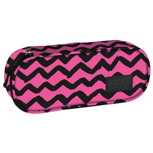 Piórnik BackUP model A 07 w kontrastowe czarno-różowe zygzaki wyglądające jak namalowane mokrym pędzlem.