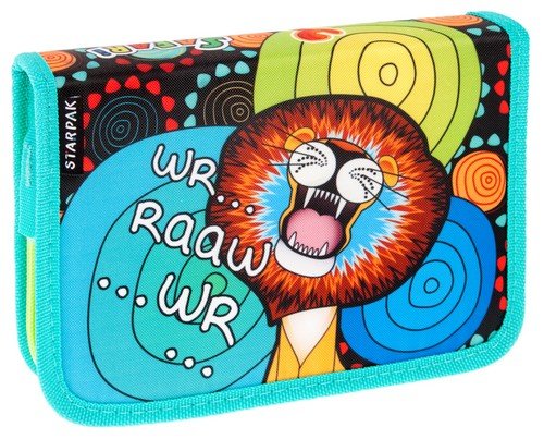 Duży piórnik z kolekcji Starpak z licencją Safari. Dzięki żywej kolorystyce oraz modnej grafice, użytkowanie go to czysta przyjemność. Zapoznaj się również z innymi produktami Starpak z serii Safari! Piórnik bez wyposażenia z elastycznymi uchwytami na przybory szkolne zapinany na mocny zamek. Pozwoli pomieścić wszystkie potrzebne artykuły piśmiennicze i samemu skompletować asortyment taki jak: flamastry, kredki, pióro, długopis, ołówek, plan zajęć oraz wiele innych. Produkt jest wyrobem tekstylnym. Przeznaczony dla dzieci w wieku: 3+. Wymiary produktu(wys.x szer. x gł.) [cm]: 13,5x20,5x4.