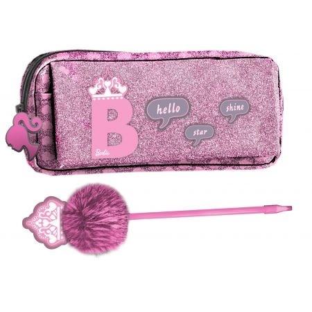 Piórnik brokatowy z długopisem z pomponem i ozdobną końcówką. Piórnik zapakowany jest w kolorowym pudełku prezentowym.