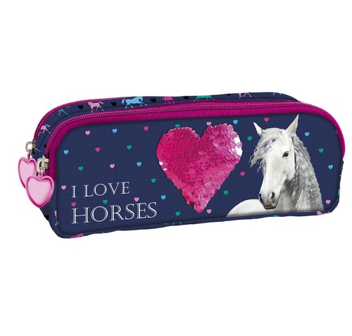 Piórnik bez wyposażenia, z dwiema przegródkami, zamykane na suwaki.