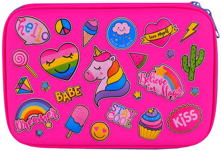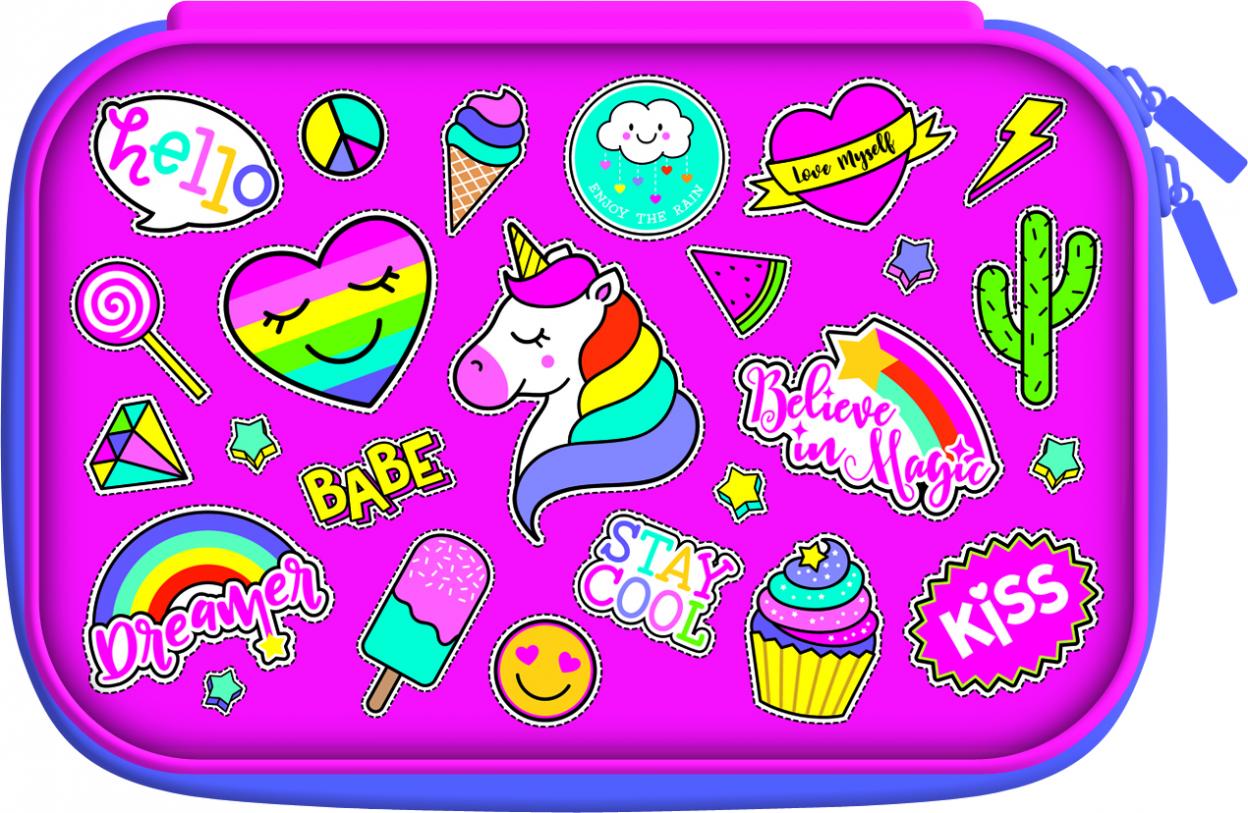 Posiada przegrody i liczne mocowania ułatwiające organizację przyborów szkolnych. Piórnik wykonany jest z materiałów wysokiej jakości.