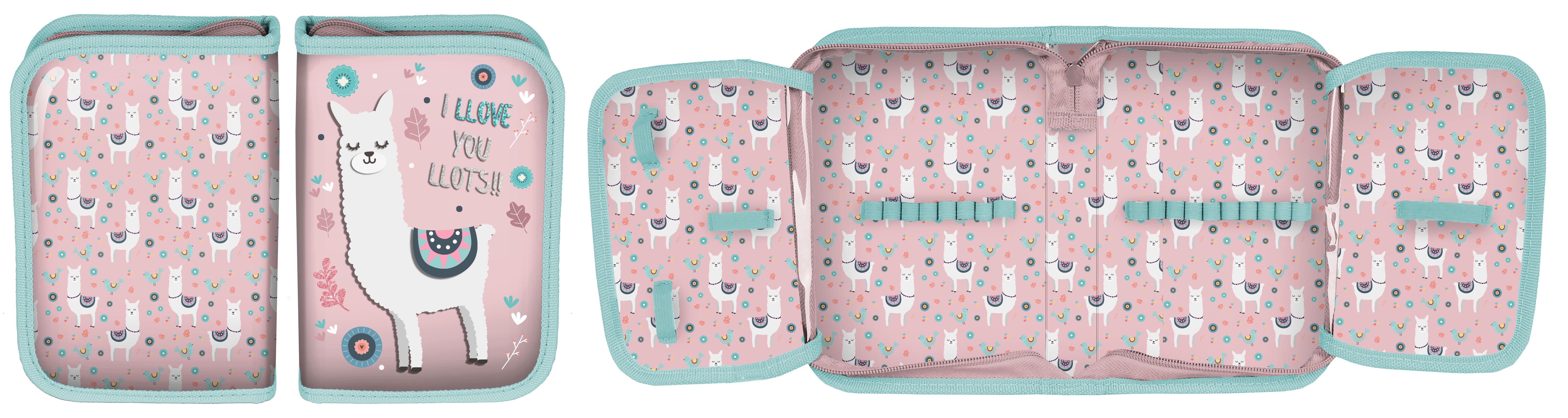 Piórnik bez wyposażenia, w środku klapka z uchwytami na przybory piśmiennicze.