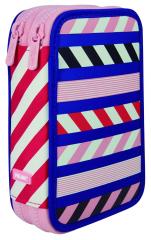 Piórnik 2-poziomowy z wyposażeniem. Kolekcja Anchor Club. Materiał wierzchni: poliester. Wyposażenie: 12 kredek trójkątnych, 18 flamastrów trójkątnych, długopis P1, ołówek trójkątny HB, temperówka AFILA, 2 gumki syntetyczne, linijka trójkątna.