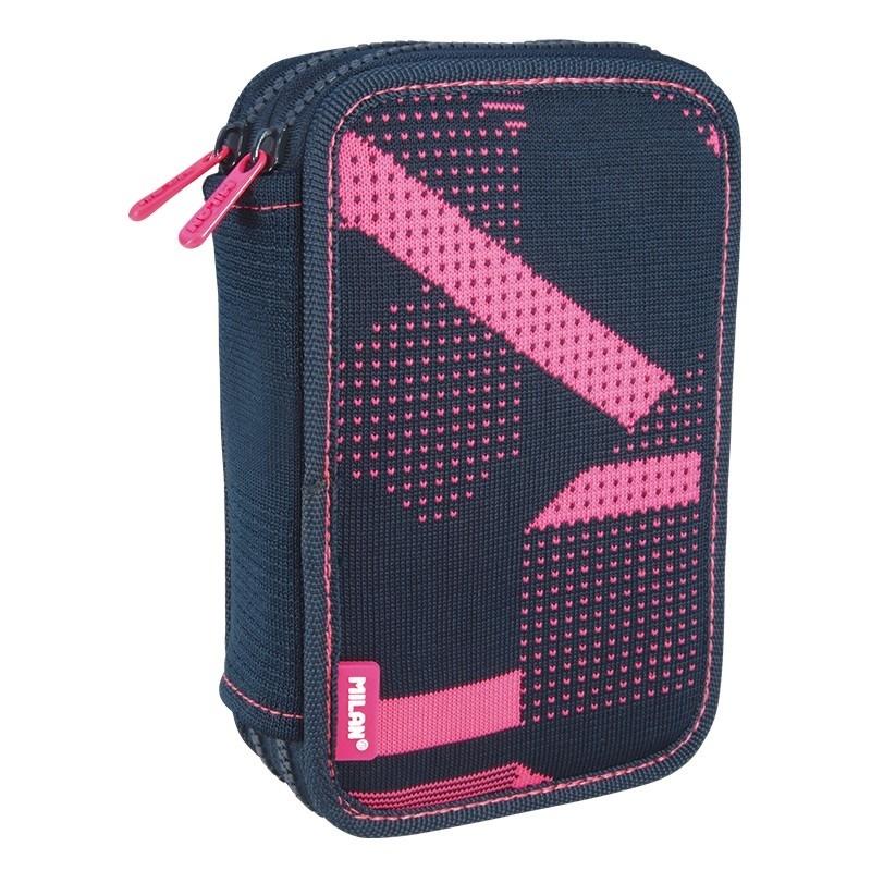 Piórnik MILAN 2-poziomowy z wyposażeniem z kolekcji KNIT w kolorze czarno - różowym.