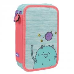 Piórnik MILAN 2-poziomowy z wyposażeniem z kolekcji MIMO w kolorze różowo - zielonym.