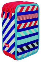 Piórnik 3-poziomowy z wyposażeniem. Kolekcja Anchor Club. Materiał wierzchni: poliester. Wyposażenie: 12 kredek trójkątnych, 10 kredek PLASTIPASTEL, 18 flamastrów ze stożkową końcówką, 3 długopisy P1, ołówek HB, 5 zakreślaczy FLUO junior, nożyczki, temperówka AFILA, 2 gumki syntetyczne, linijka.