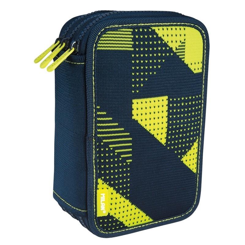 Piórnik MILAN 3-poziomowy z wyposażeniem z kolekcji KNIT w kolorze czarno - żółtym.