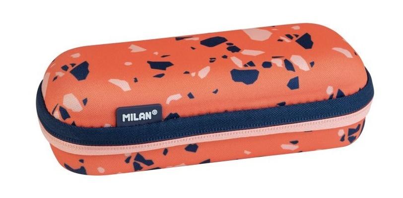 Piórnik MILAN owalny usztywniany z kolekcji TERRAZZO II zapinany na suwak w kolorze pomarańczowym. W środku dodatkowa kieszonka z siatki.