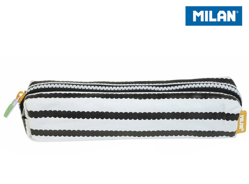 Piórnik MILAN mini kwadratowy z kolekcji Hide & Seek zapinany na suwak w kolorze czarno-biały. Materiał: bawełniana strona zewnętrzna i podszewka z poliestru. Wymiary: wymiary: 20,5 x 4,5 x 5 cm.