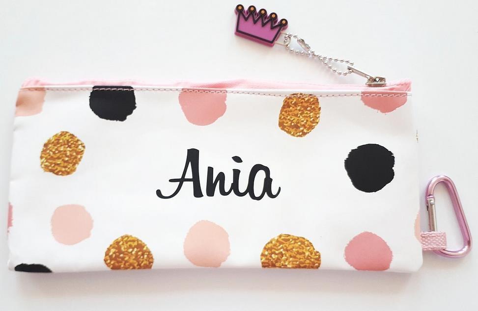 Dodatkowo do piórnika dołączona jest zawieszka w kształcie korony oraz karabińczyk.