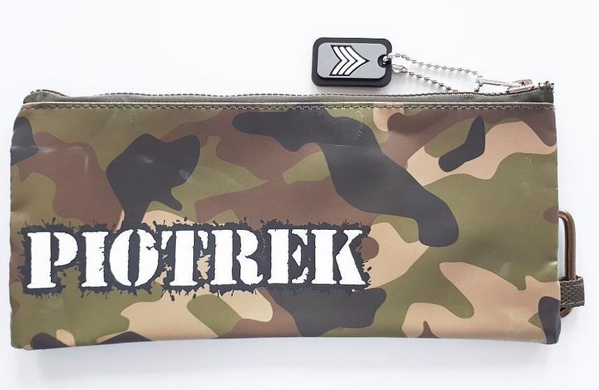Piórnik wykonany z wysokiej jakości, wytrzymałego materiału Oxford. Pomieści wszystkie podstawowe przybory szkolne. Dodatkowo do piórnika dołączona jest zawieszka w kształcie "nieśmiertelnika" oraz karabińczyk. Wymiary: 23,5 x 11 x 1cm