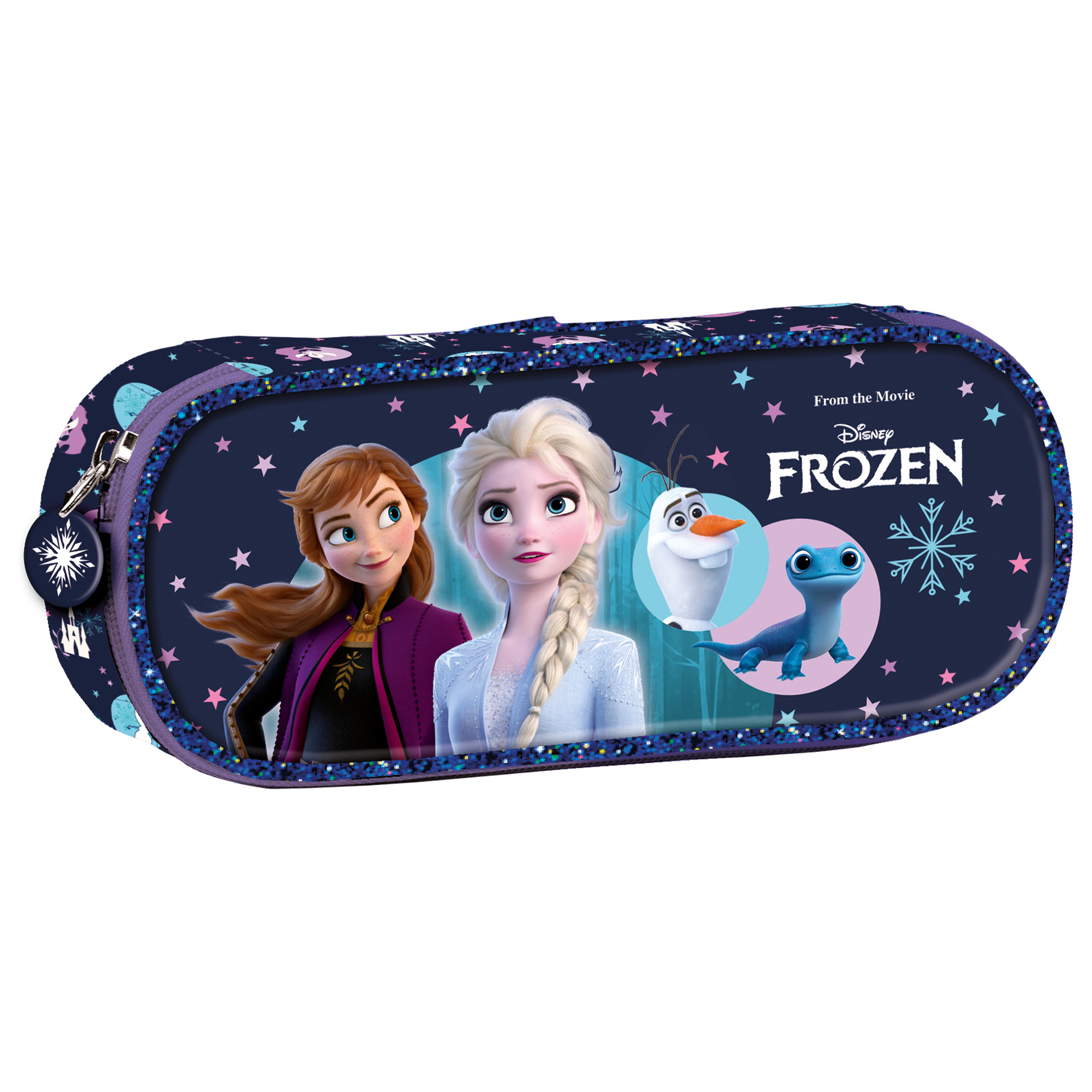Jednokomorowy usztywniany piórnik bez wyposażenia, zapinany na zamek z ozdobną zawieszką, którego wnętrze całkowicie wykończone jest podszewką.