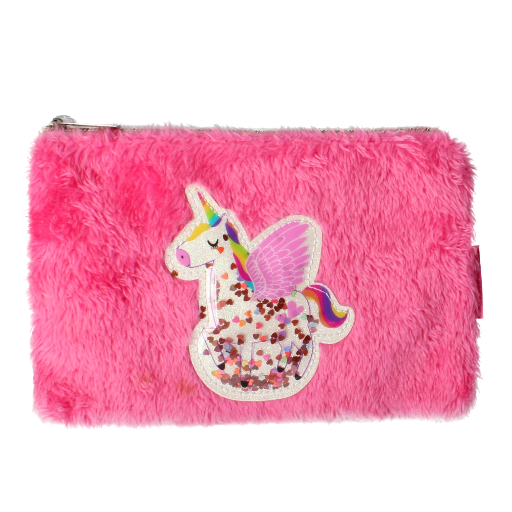 Pluszowy piórnik w kształcie saszetki z zamkiem błyskawicznym. Pomieści niezbędne artykuły piśmiennicze i nie zajmie dużo miejsca w plecaku. Wymiary: 20 x 14 cm