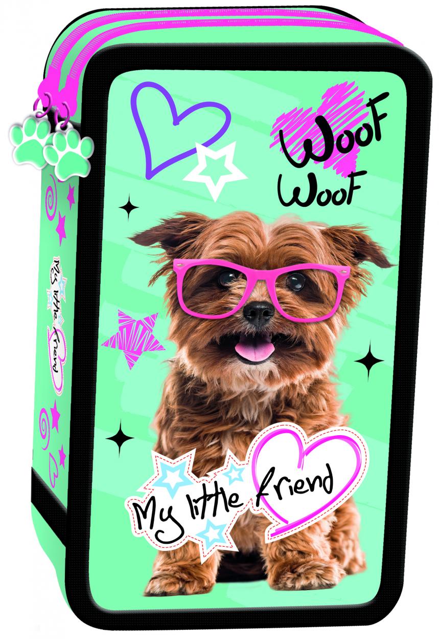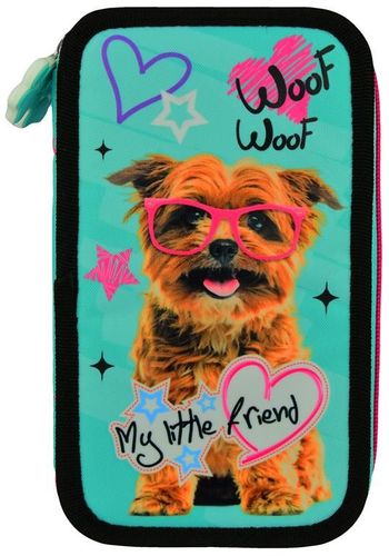 Piórnik dwupoziomowy posiadający dwie oddzielne, zamykane zamkiem błyskawicznym przegrody ułatwiające organizację przyborów szkolnych. Liczne mocowania pozwalają utrzymać porządek w piórniku. Wewnątrz piórnika znajduje się zestaw 10 kredek szkolnych, 10 flamastrów, 2 ołówki HB z gumką, temperówka, linijka, gumka do ścierania, notesik 6,5x10 cm. Wszystkie elementy wyposażenia ozdobione są motywami licencyjnymi korespondującymi z estetyką całego piórnika. Grafika piórnika wykorzystuje najbardziej aktualne motywy licencyjne. Piórnik i jego zawartość wykonane są z materiałów wysokiej jakości.