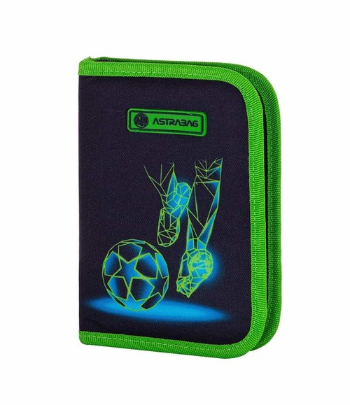 Pojedynczy jednoklapkowy piórnik Astrabag to gratka dla wszystkich fanów piłki nożnej. Pełna dynamiki geometryczna grafika przedstawiająca piłkarza chwilę przed kopnięciem piłki oraz liczne piktogramy przykuwają uwagę każdego miłośnika tej najpopularniejszej dyscypliny sportowej. Piórnik jest w pełni wyposażony we wszystkie niezbędne artykuły szkolne. Dzięki czemu idealnie sprawdzi się w klasach I-III.