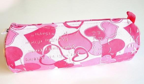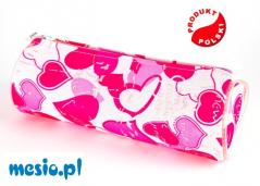 Piórnik tuba z nadrukiem Różowe Serca. Materiał wodoodporny (kodura). Produkt Polski.
