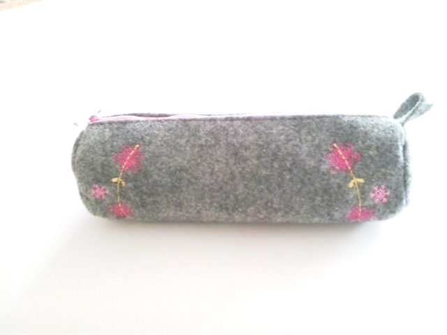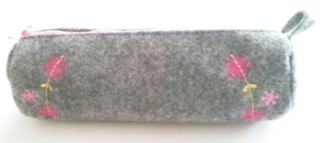 Piórnik tuba z filcu z wyhaftowanymi kwiatuszkami. Produkt Polski.