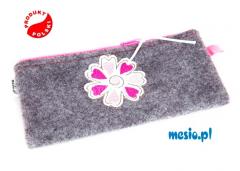 Piórnik saszetka z filcu z wyhaftowanym kwiatuszkiem. Produkt Polski.