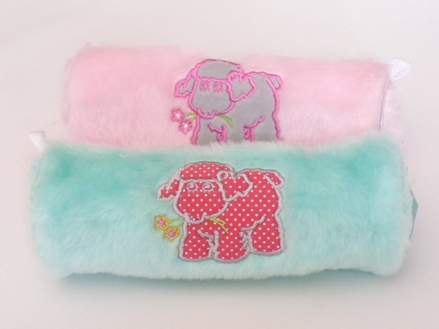 Piórnik tuba z materiału zabawkarskiego (miś) z wyhaftowanym barankiem. Produkt Polski.