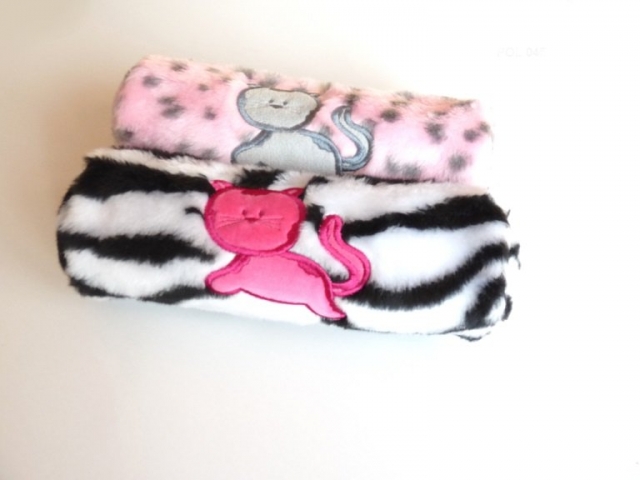 Piórnik tuba z materiału zabawkarskiego (miś) z wyhaftowanym kotkiem. Produkt Polski.