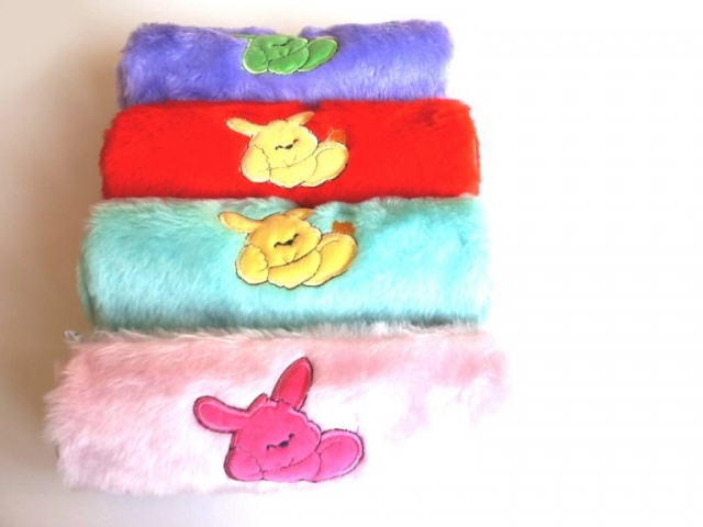 Piórnik tuba z materiału zabawkarskiego (miś) z wyhaftowanym zajączkiem. Produkt Polski.