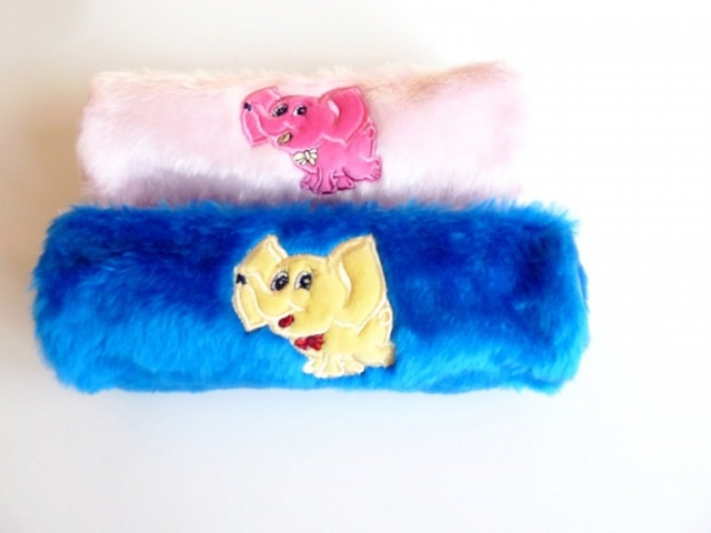 Piórnik tuba z materiału zabawkarskiego (miś) z wyhaftowanym słonikiem. Produkt Polski.