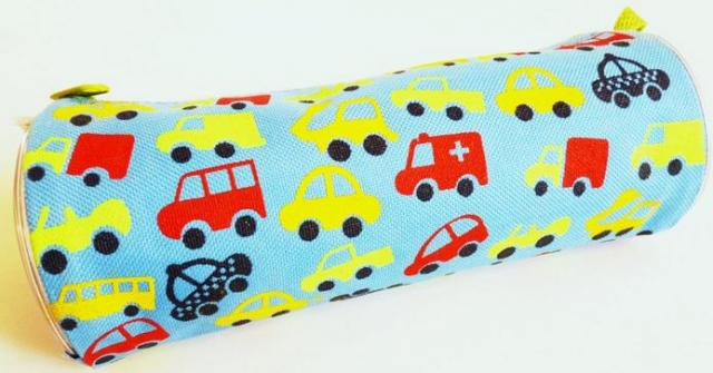 Piórnik tuba z nadrukiem Samochodziki. Materiał wodoodporny (kodura). Produkt Polski.