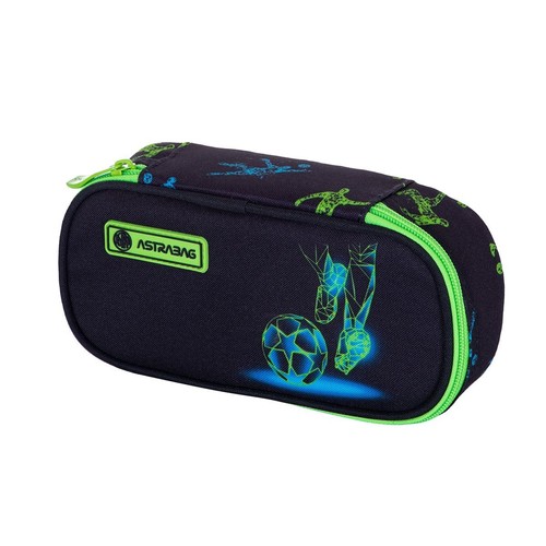 "Saszetka piórnik Astrabag to gratka dla wszystkich fanów piłki nożnej. Pełna dynamiki geometryczna grafika przedstawiająca piłkarza chwilę przed kopnięciem piłki oraz liczne piktogramy przykuwają uwagę każdego miłośnika tej najpopularniejszej dyscypliny sportowej. Saszetka jest kompaktowa i niezwykle pojemna, dzięki czemu sprosta wymaganiom każdego ucznia. Dodatkowo dzięki podwójnemu wewnętrznemu organizerowi pomieści wszystkie niezbędne przybory.
