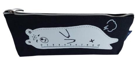 Piórnik z naszywką misia z linijką, zamykany na zamek. Doskonale nadaje się do szkoły.