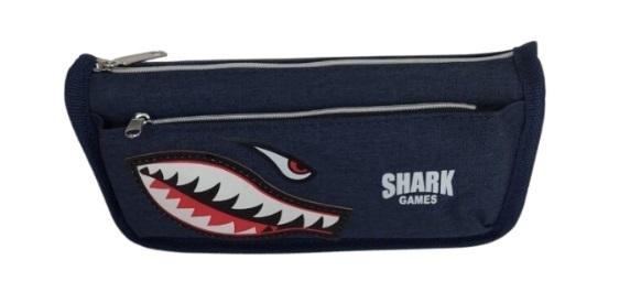 Piórnik z naszywką rekina. Posiada 2 komory zapinane na zamek. Doskonale nadaje się do szkoły.