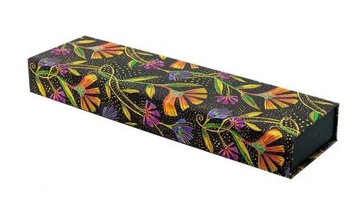 Piórnik marki Paperblanks z reprodukcją jednej z prac Laurel Burch, artystki znanej z przepełnionych bogactwem kolorów obrazów, przedstawiających świat zwierząt i roślin