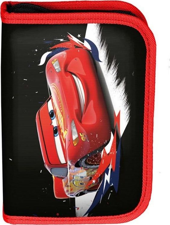 Piórnik z wyposażeniem Cars czarno-czerwony. Piórnik jednokomorowy posiada zadrukowane, kolorowe wnętrze oraz zaopatrzony jest w dwie klapy z wyposażeniem. W środku znajduje się długopis, ołówek, 7 pisaków, 9 kredek, gumka, linijka, temperówka oraz ekierka. W Paso dbamy, aby nasze piórniki były funkcjonalne i ułatwiały organizację przyborów szkolnych podczas lekcji.