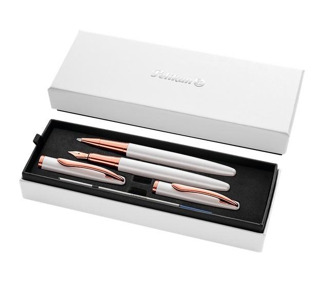 Charakterystyczny sprężynowy klips w kształcie dziobu pelikana oraz dopracowane detale czynią ten zestaw nie tylko funkcjonalnym, ale i niezwykle stylowym – idealnym na prezent lub do codziennego użytku.