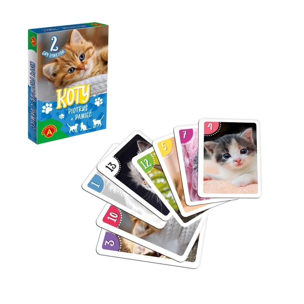 Zestaw 25 kart z pięknymi, realistycznymi wizerunkami kotków, dzięki którym można zagrać z dziećmi w dwie podstawowe gry karciane Piotruś i Pamięć. Obie gry wspaniale ćwiczą spostrzegawczość, rozwijają skojarzenia oraz uczą zachowań społecznych. To idealny wstęp dla najmłodszych do świat gier.