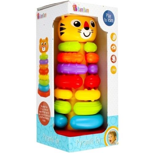 Tęczowe okręgi PIRAMIDKI TYGRYS doskonale sprawdzają się w pierwszym okresie nauki sortowania i ćwiczenia zdolności motorycznych. Układanie kaskadowe pierścieni, a następnie potrząsanie nimi dostarcza dziecku wielu radości i aktywizuje go do działania. Zróżnicowana faktura i nieregularna powierzchnia okręgów dodatkowo wzbogaca doznania dotykowe wpływając na intensyfikacje zmysłu dotyku. Intensywna kolorystyka elementów oraz ich zróżnicowana tekstura stymulują zmysły na wielu płaszczyznach, w tym wzroku, percepcji. Zabawka doskonale rozwija wyobraźnię i zdolnonści poznawcze. Wymiary/waga/baterie: wymiary produktu (dł. x wys. x gł.)[cm]: 12x29x12, wymiary opakowania (dł. x wys. x gł.)[cm]: 13x29x13, waga produktu bez opakowania [kg]: 0,15 kg, waga produktu w opakowaniu [kg]: 0,27 kg, nie wymaga zasilania bateriami. Zabawka przeznaczona dla dzieci w wieku: 6m+. Pakowana w kartonik z otwartym okienkiem.