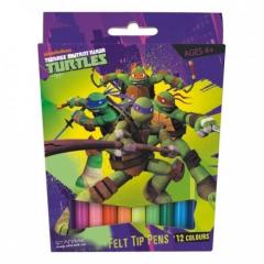 Zestaw pisaków w żywych kolorach. Wąskie końcówki z twardego filcu umożliwiają rysowanie cienką kreską. Ozdobione wizerunkami ulubionych bohaterów Teenage Mutant Ninja Turtles.