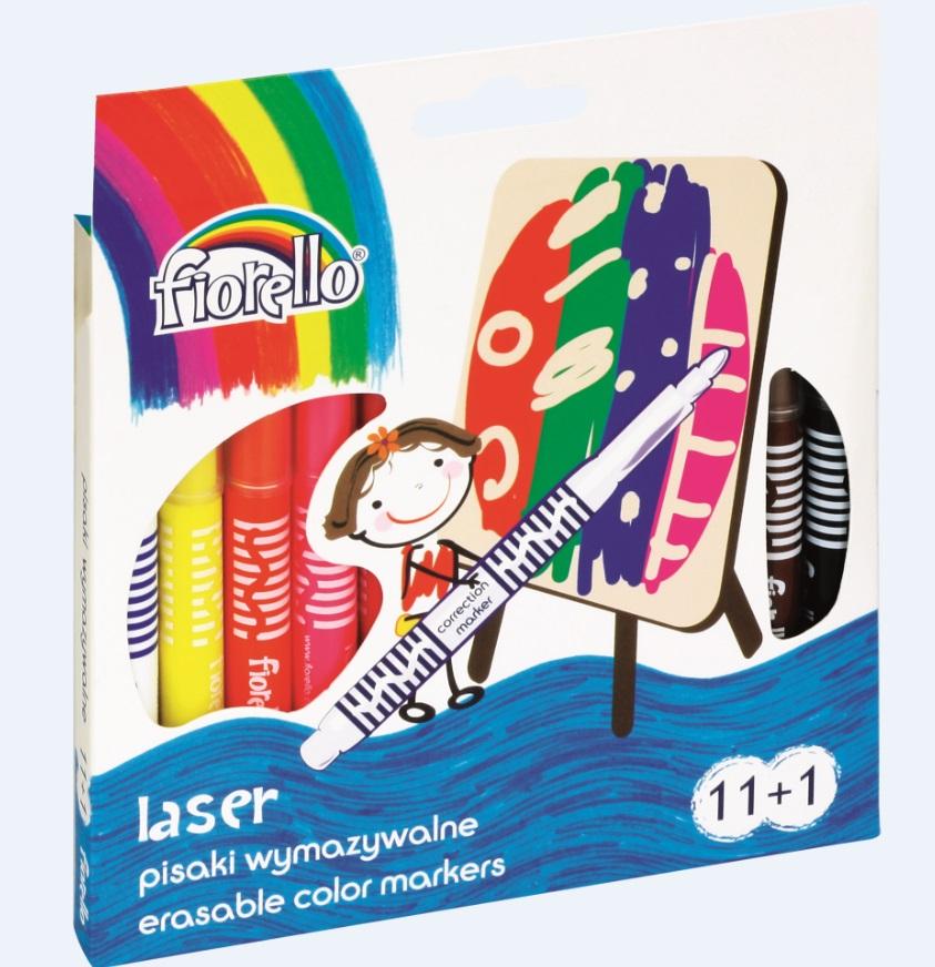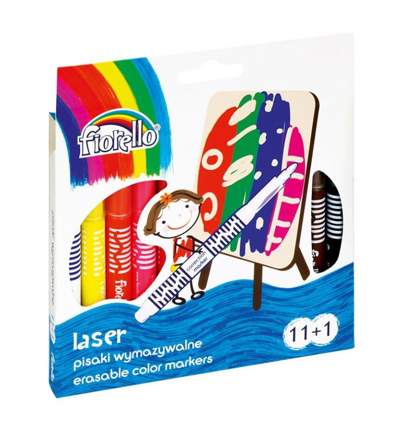 w zestawie 11 pisaków kolorowych oraz wymazywacz