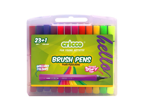 - pakiet 24 barw (23 pisaki z końcówką pędzelkową + 1 czarny pisak do konturowania)