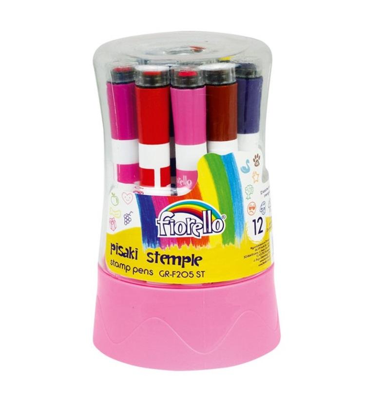 pisaki dwa w jednym: końcówka pisząca i nasączona pieczątka z wesołym wzorem tusz na bazie wody bezpieczna wentylowana zatyczka umożliwia oddychanie w przypadku połknięcia grubość linii pisania 1-3 mm średnica pieczątki 8 mm zestaw 12 kolorów