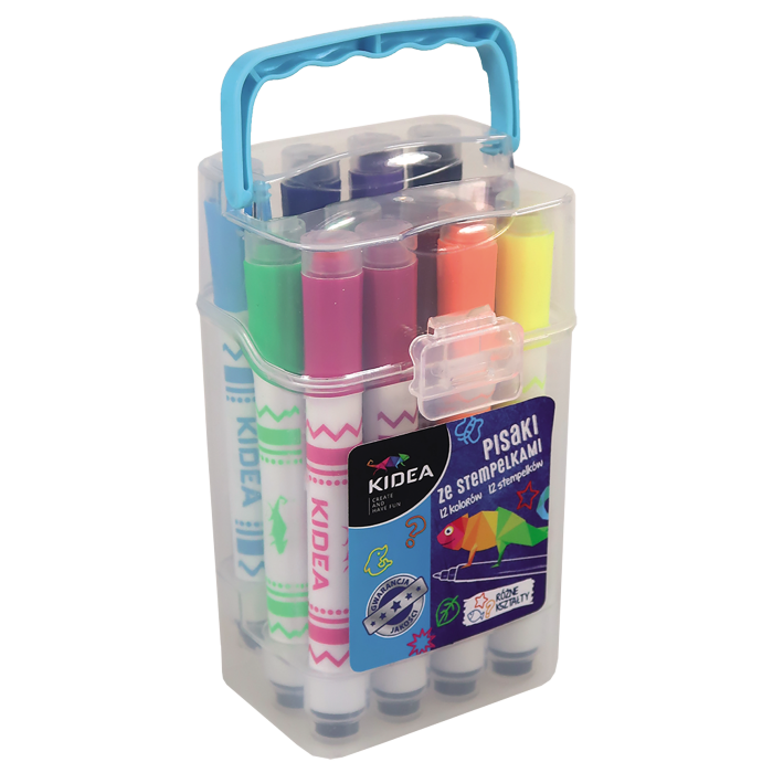 Pisaki ze stempelkami Kidea 12 kolorów i 12 stempelków.