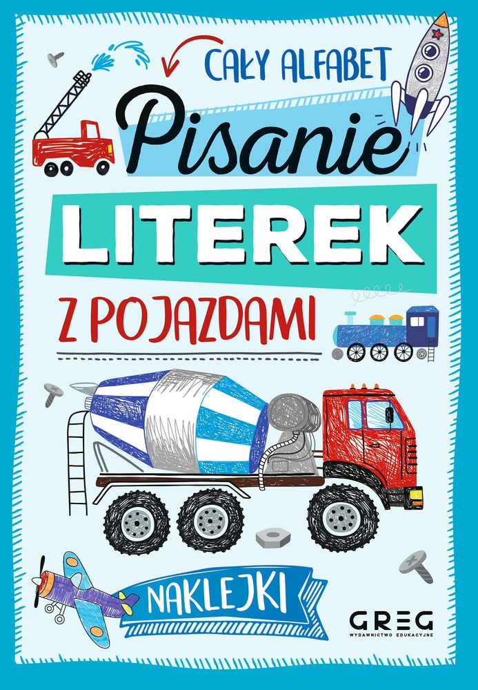Każdej literce towarzyszą ilustracje do pokolorowania, które uprzyjemniają pracę. Są one przygotowane specjalnie z myślą o małych użytkownikach książki - duże, wyraźne, proste do pokolorowania. Kolorowe naklejki do każdej ilustracji mogą posłużyć jako wzór, jak pomalować obrazek. Każdy mały miłośnik pojazdów znajdzie tu coś dla siebie - są tu maszyny drogowe, samoloty, statki, rakiety, luksusowe samochody, motory, pojazdy wojskowe i wiele innych. Przy każdej ilustracji znajduje się też nazwa pojazdu. Dodatkowo można podpisać swoją pracę!