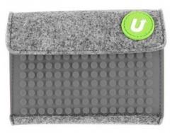 Szary filcowy portfelik z szarym panelem silikonowym ( panel silikonowy - jest to specjalna powierzchnia, na której za pomocą silikonowych pixelowych klocków można układać niepowtarzalne wzory, które nadają produktowi wyjątkowy charakter ) o wymiarach 15 x 10 punktów , co daje 135  pozycji, aby układać swoje pomysły. Pokryty pikselami panel portfelika  jest giętki i niezwykle trwały. Piksele bardzo dobrze trzymają się powierzchni, przez co są odporne na codzienne użytkowanie produktu.