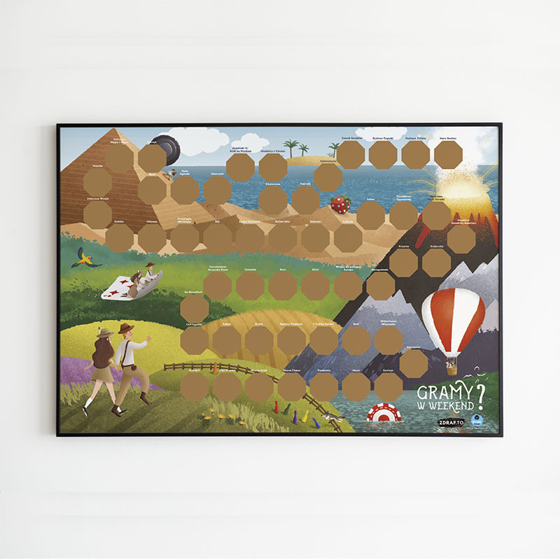 W końcu mamy coś dla graczy gier planszowych Oto nowa pozycja na naszej mapie plakatów do zdrapywania! Plakat Gramy w weekend? to nasza odpowiedź dla wszystkich pytających o plakat dla fanów plansznówek. Dość monotonnego grania w jeden tytuł, lub mozolnego główkowania co wybrać do grania ze znajomymi w piątkowi wieczór! Z naszym plakatem przeżyjesz wyjątkową przygodę i odkryjesz absolutne hity oraz obowiązkowe tytuły dla każdego grającego w gry planszowe.
