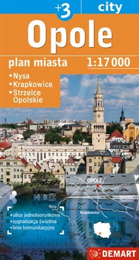 Plan Opola w skali 1:17 000 plus centrum w skali 1:10 000, wzbogacony o plany najważniejszych miast w okolicy.- Ulice jednokierunkowe- Strefy ruchu pieszego- Sygnalizacja świetlna- Linie komunikacyjne- Spisy ulic i informacje teleadresowe- Szlaki turystyczne- Rysunki i opisy wybranych zabytków Opola.