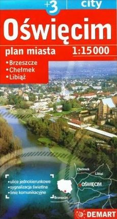 Plan Oświęcimia w skali 1:15 000 plus centrum w skali 1:7 500, wzbogacony o plany najważniejszych miast w okolicy.- Ulice jednokierunkowe- Sygnalizacja świetlnaLinie komunikacyjne- Spisy ulic i informacje teleadresowe.