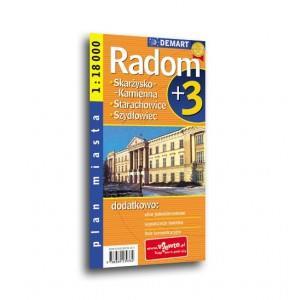 Plan Radomia w skali 1:18 000 plus centrum w skali 1:9 000, wzbogacony o plany najważniejszych miast w okolicy.- Ulice jednokierunkowe- Strefy ruchu pieszego- Sygnalizacja świetlna- Linie komunikacyjne- Spisy ulic i informacje teleadresowe okolicznych miast.