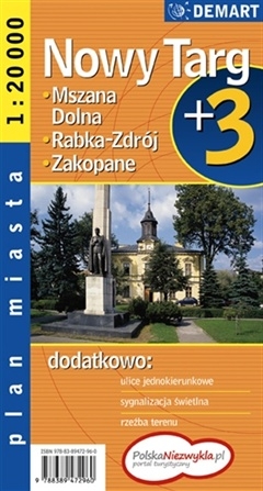 Plan Zakopanego w skali 1:20 000 oraz plan Nowego Targu w skali 1:20 000, wzbogacony o plany najważniejszych miast w okolicy.- Ulice jednokierunkowe- Sygnalizacja świetlna- Wyciągi narciarskie- Linie komunikacyjne, rzeźba terenu- Spisy ulic i informacje teleadresowe, szlaki turystyczne i ścieżki rowerowe.