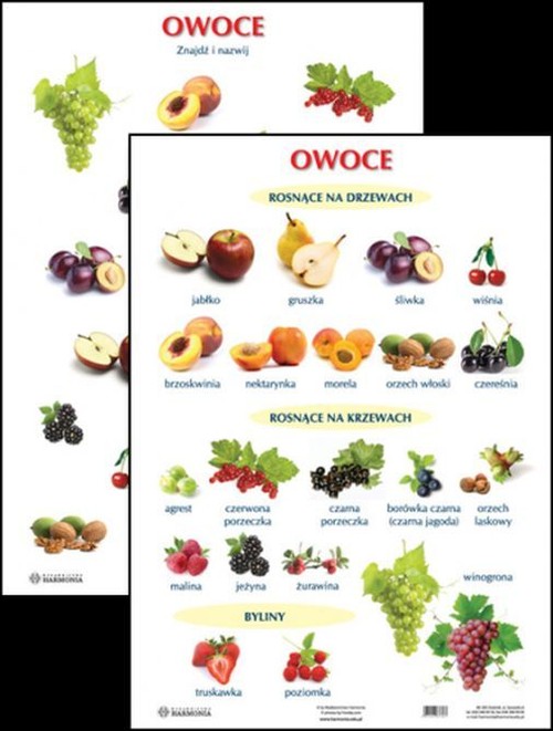 OWOCE♦ format 61 cm x 86 cm♦ dwustronnie zalaminowane♦ wieloletnia trwałośćPrezentujemy Państwu plansze edukacyjne dla przedszkoli i klas 1-3. Jest to zestaw pomocy dydaktycznych, które przydadzą się w każdej klasie i sali przedszkolnej.Tematyka plansz jest zgodna z programem nauczania i dotyczy rzeczy bliskich dziecku. Dzięki wyrazistym ilustracjom i zdjęciom tablice w przyjazny sposób przedstawiają realia naszego świata. Poszczególne wzory sprawdzą się w dekorowaniu klasy lub pokoju dziecka, zwłaszcza jeśli ma już ono swoje zainteresowania.Plansza zawiera z jednej strony zdjęcia i nazwy owoców uprawianych w Polsce na drzewach, krzewach i jako byliny, z drugiej zaś strony owoce te są niepodpisane, by dzieci same mogły je nazwać
